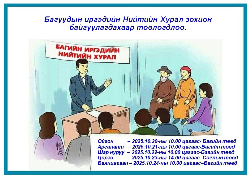 Иргэд та бүхнийг хуралдаа идэвхтэй оролцохыг уриалж байна.